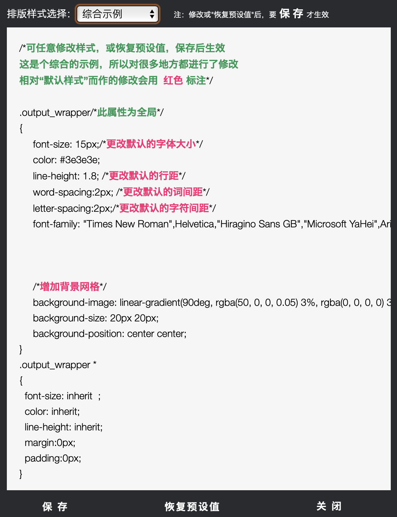 目前整个开发还处于很前期的阶段, 除了提供了一些配色更改的设置、 对一些内置样式如 strong、emphasis、highlight 进行了修改之外, UI 的美化、其他元素(ol、il、code、callout 等)的样式设计、 文章排版之类的任务还暂时没有进行。不过问题不大,早晚而已。