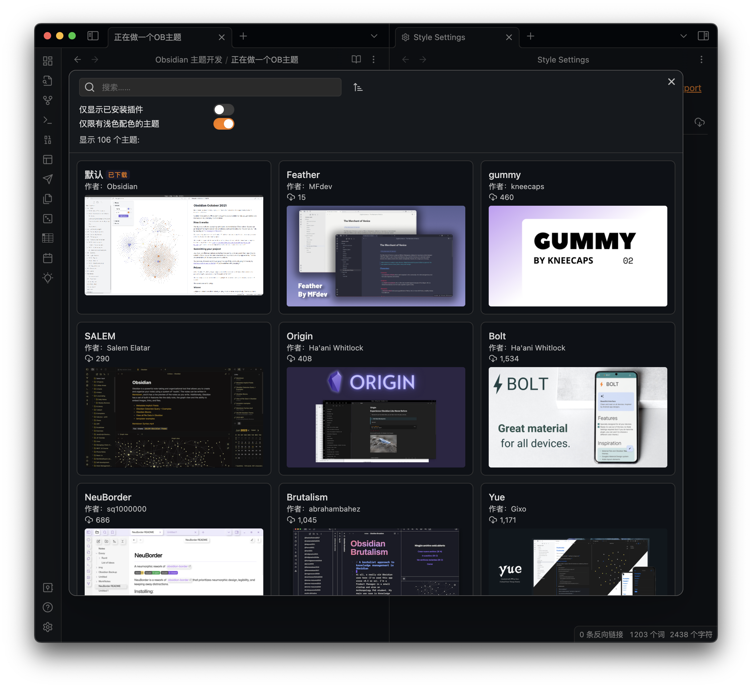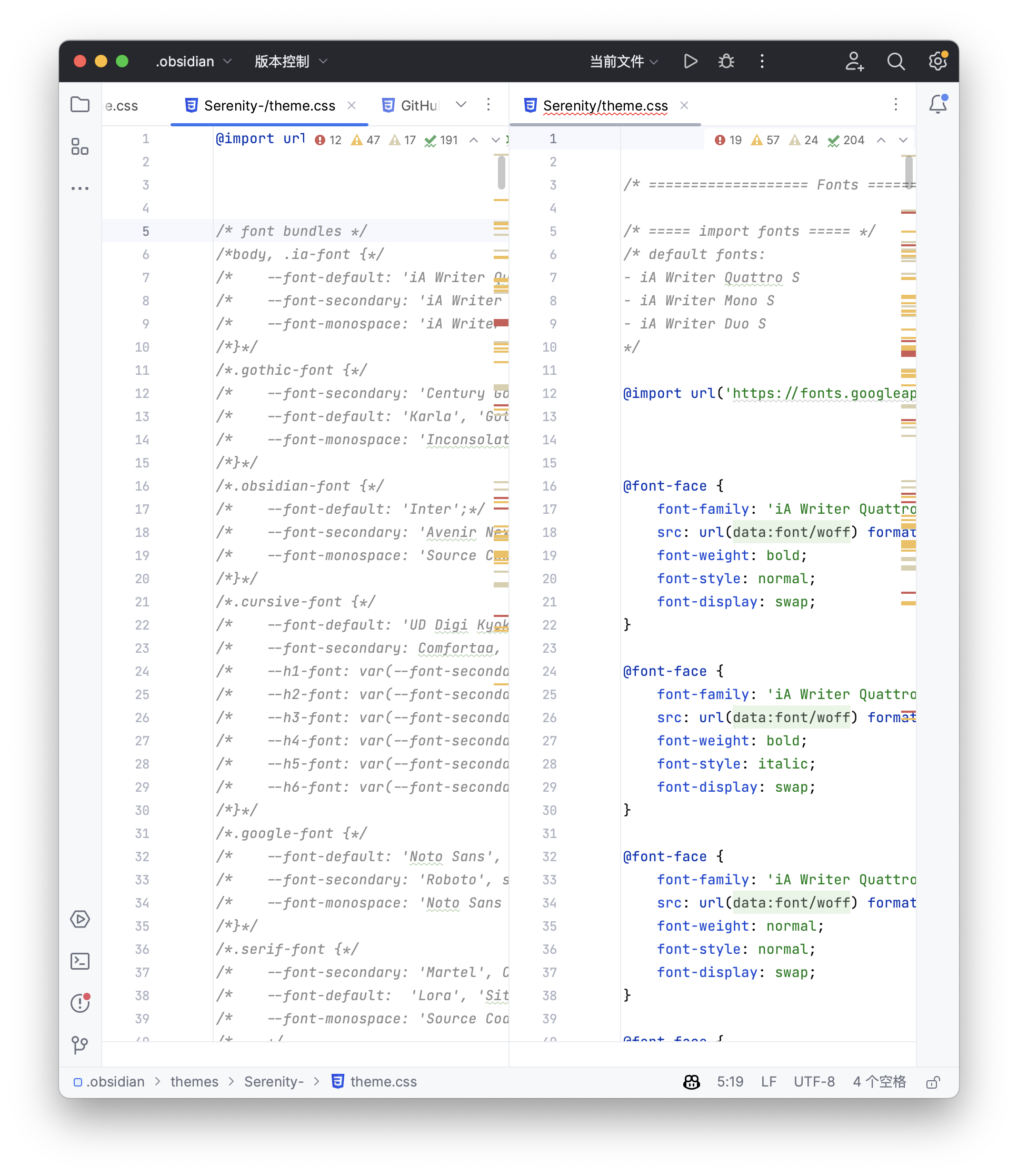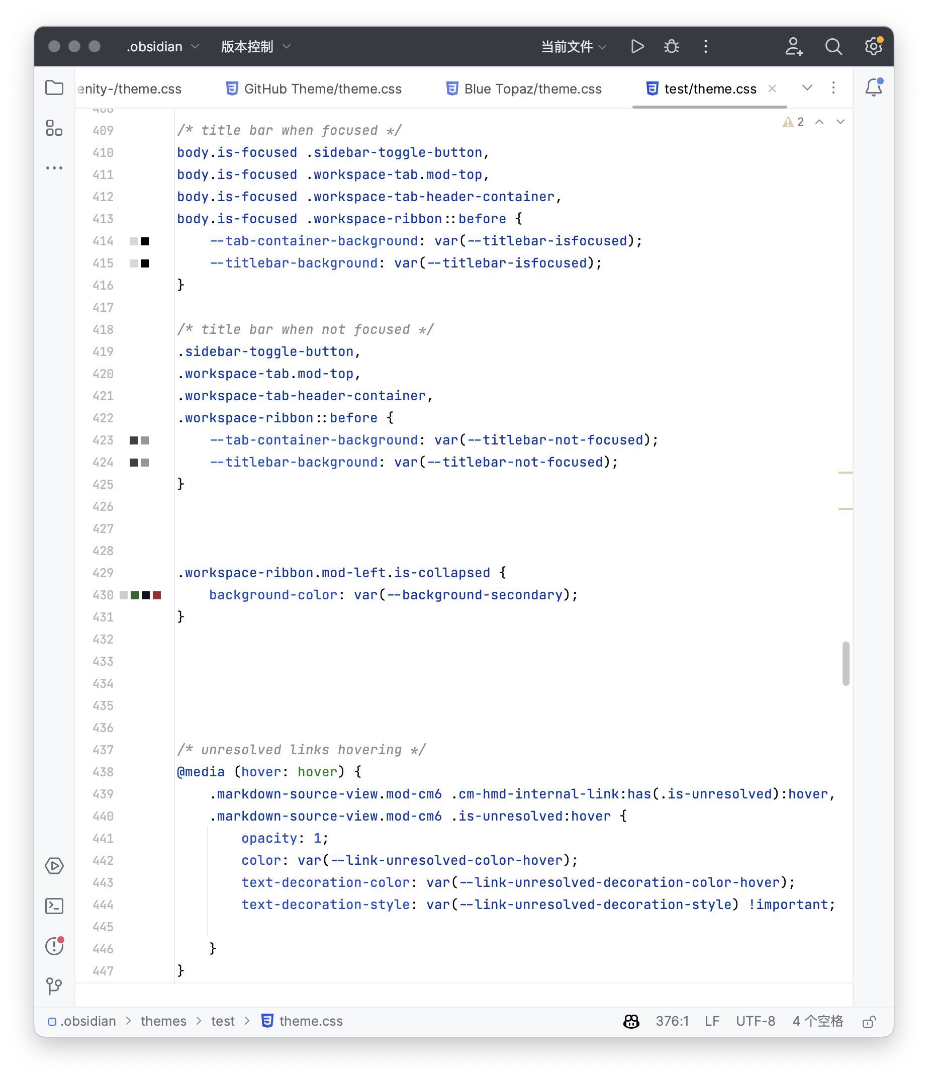 在刚萌生开发主题这个想法的时候, 我的策略是对已有的、相对较完善的主题 CSS 进行修改, 基于 Style Settings 插件对其提供的设置接口进行调整,并增加我认为重要的、常用的设置选项。