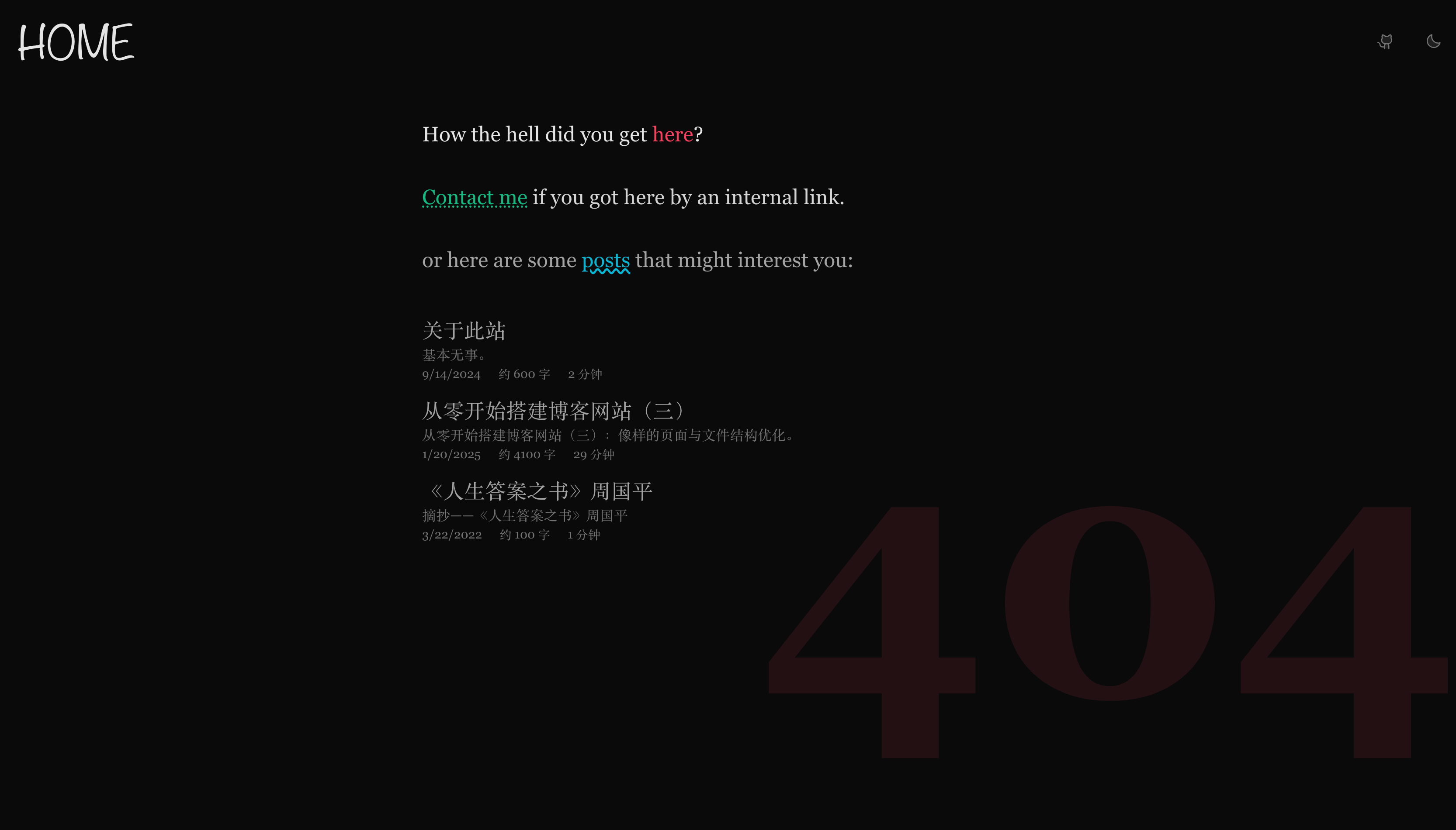 从零开始搭建博客网站(十):404 找不见和 Contact。