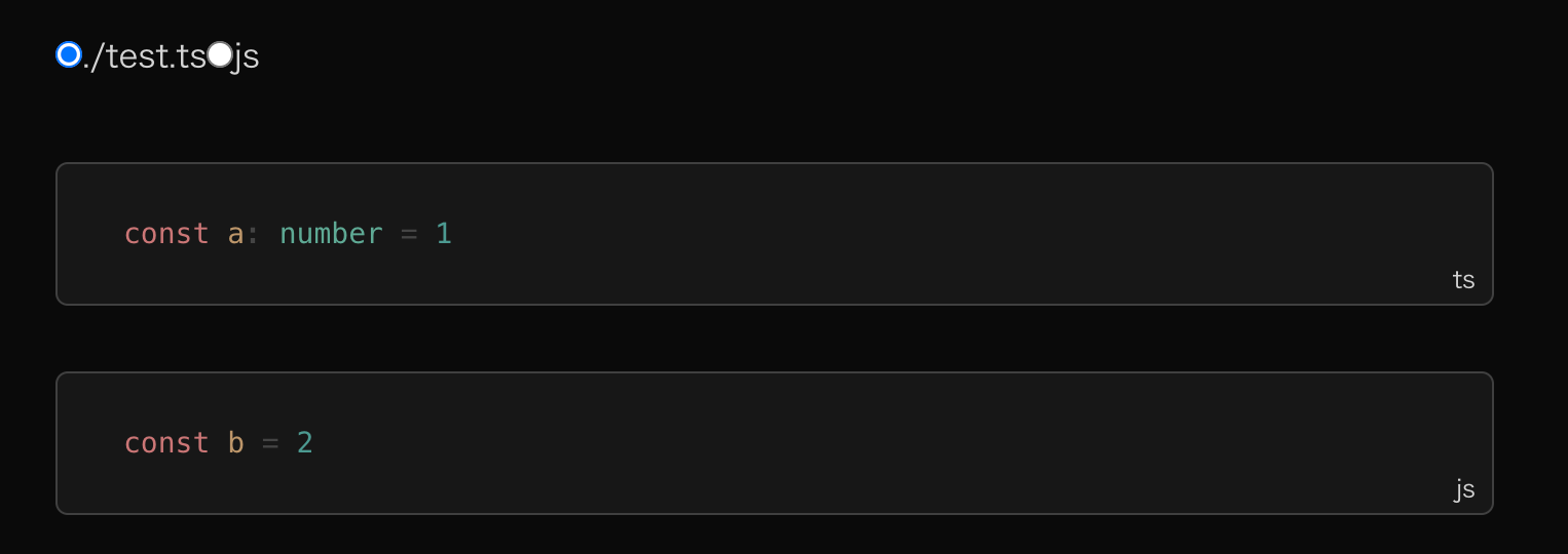 VitePress 还支持「code-group」, 可以看看 这个。 当然代码块组的样式也得自己写,不然就是这样: